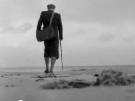 Among the maelstrom of Jamesian storyflow Parkins is at the preceptory in no time and finds a strange piece from a small artificial hole among the buried stones and mounds. On his way back to the Inn he notices someone walking far behind in the groyne-infested beach, and this someone is given a bit more attention than for any random beach stroller.