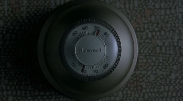 Back at home, kitchen telly is featuring Tommy Tammisimo’s cough syrup commercial, cutting into a scene of an ideal and whole family until we notice the picture quality referring to television. As requested, we see a shoe thrown at the telly shutting it down and Lynn Sear reprimands his son as she tries to adjust the thermostat, having thick clothing for in-house living. Is the audience shivering too? There is not that premonitory background score yet but those cold fingers are about. While dinner get’s started, Lynn asks his son about grandmother’s bumblebee pendant found in Cole’s drawer, a place it should not be in. ‘Sometimes things get moved’ is not enough to Lynn Sear, who declares she’s been praying, and while not being a religious fanatic, raises shortly the curtain of the state of desperation she’s going through. So, after happy trolley scene we are in the other end; time for landing for audience also. Not to forget the cold lurking in the background.