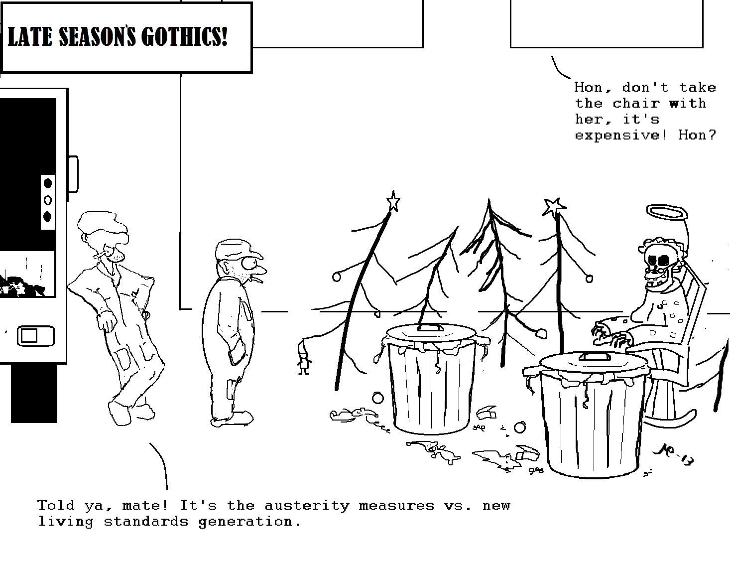 Image Santa Clausterity 31 Tuesday Dec 2013 Posted by Mika Paananen in World Rants ≈ Leave a comment Tagsausterity, holidays, season Late Season’s Greet err Gothics! Share this: Click to share on X (Opens in new window) X Click to share on Facebook (Opens in new window) Facebook Like Loading... Related