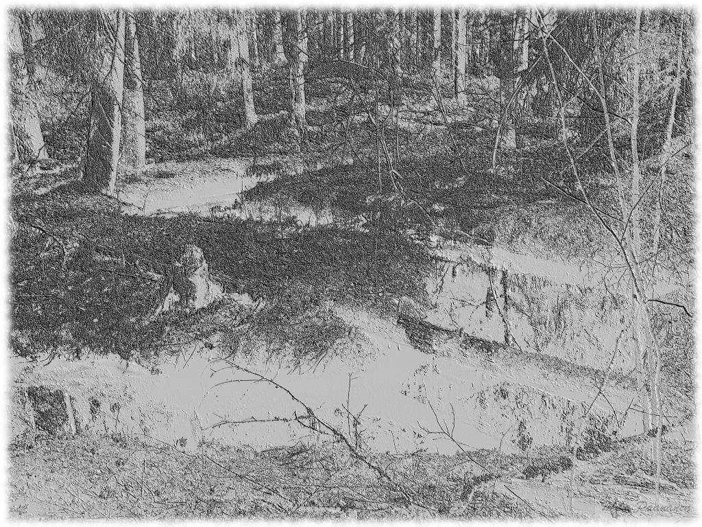 The muttering accompanied the steps along the mud road and the handicraft products in Tubberwood’s backback were heavy and mostly pottery. Of course, made by Amialda. Raising pigs and five kids was enough for him but he was the one to take care of the marketing for Amialda’s skilfully crafted pottery. Blimeydilly’s it was, after the pottery would be sold, that was for sure. Ten more miles to saunter, under the grey skies. Slight headwind brought some odd odors and even some clamor in its humble gusts. Just sounds and smells of forest road life. Tubberwood was in his thoughts, it could have been about tax returns—he used to be very precise with the taxes—or then simply about Telluranda Haupt, another wife in his neighbourhood. It took some time to notice he had company.